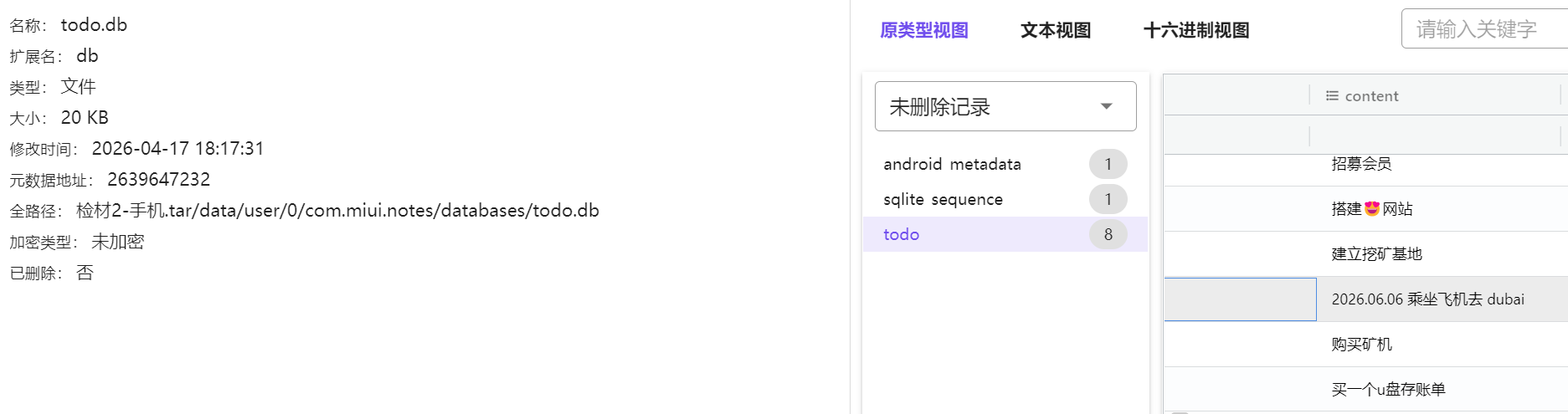 这道题目当时没做出来,后来发现可以在todo.db中看见notes信息